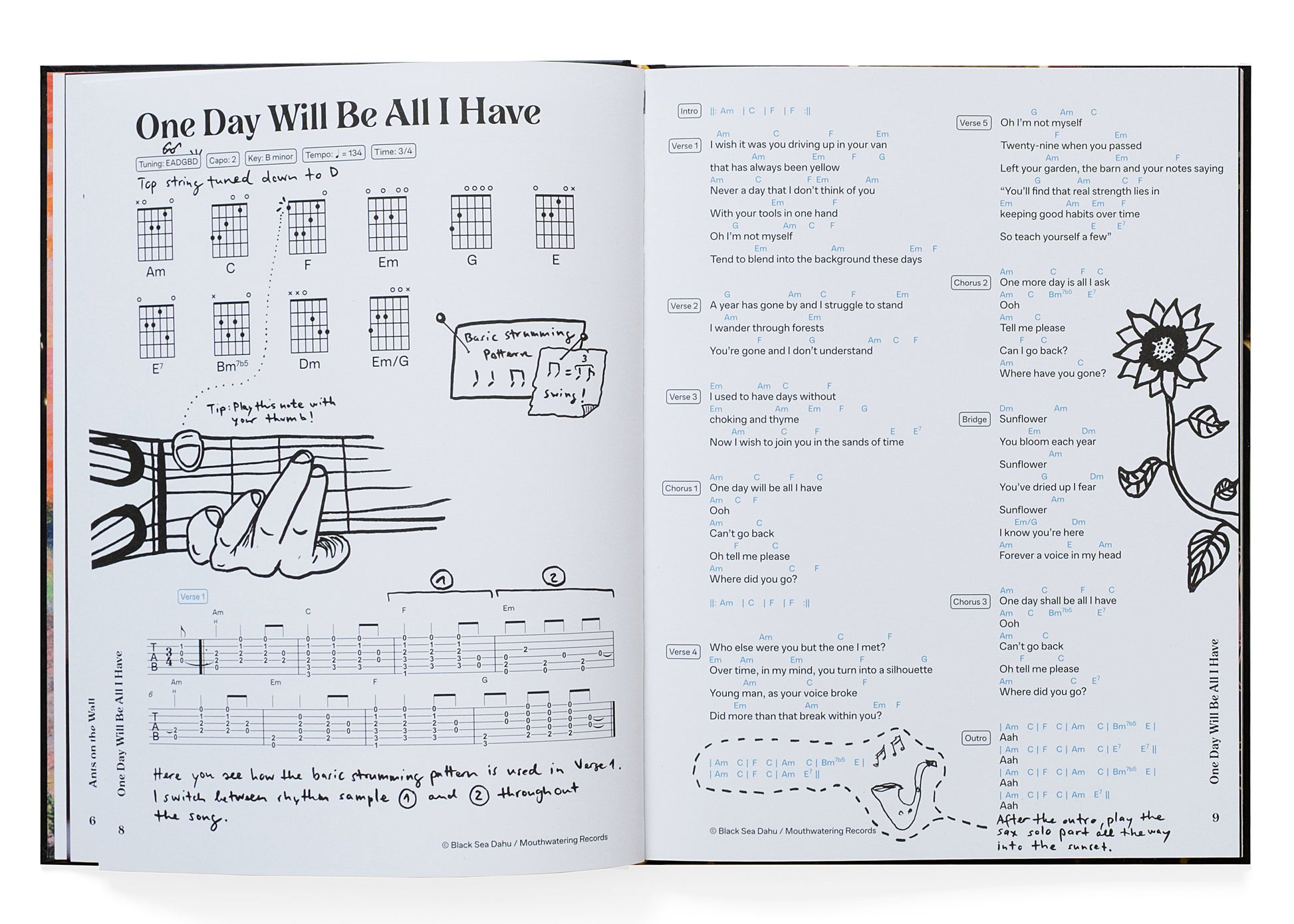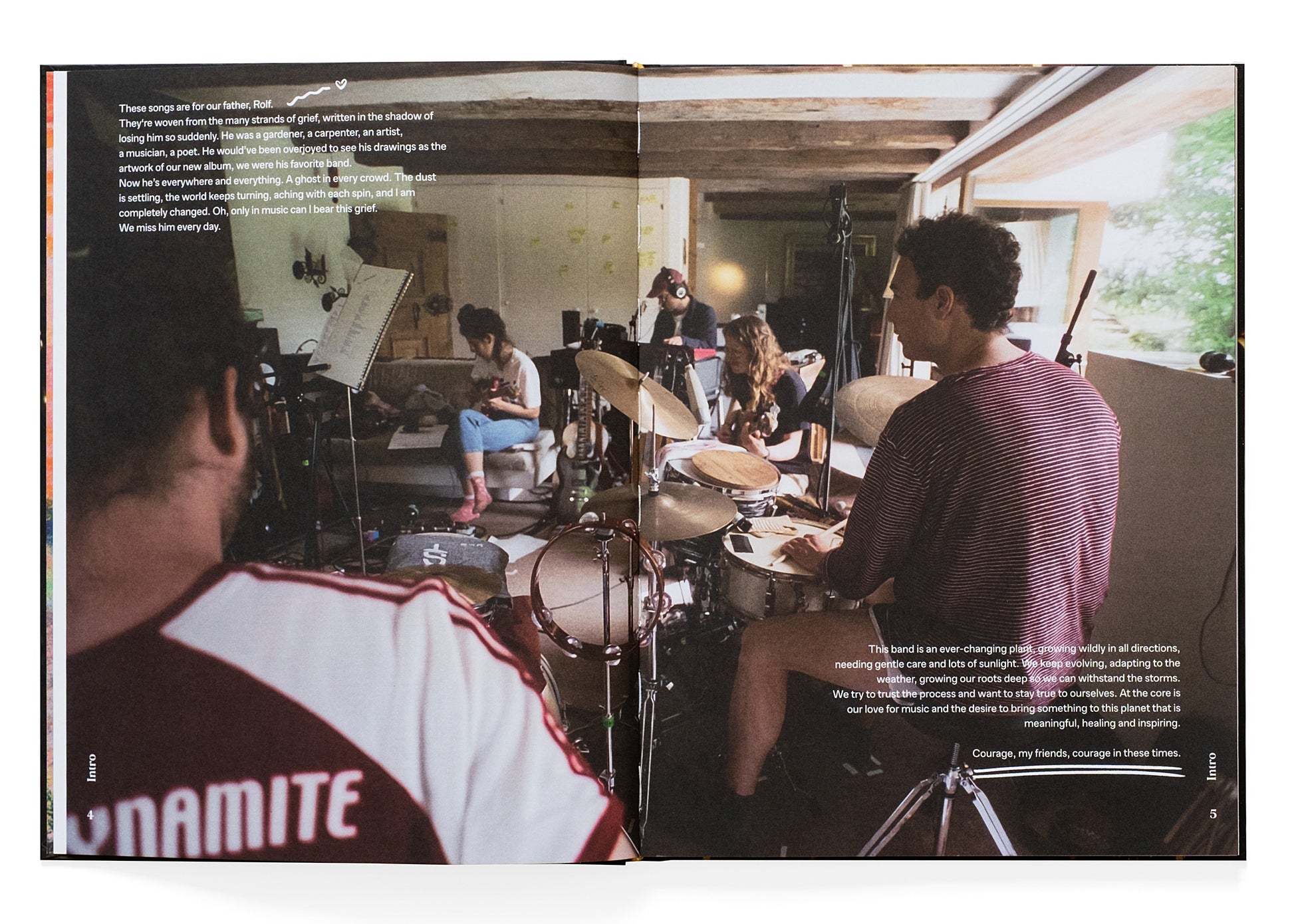 Außerdem findest du darin Zeichnungen unseres Vaters, die als Artwork für das Album dienten. Das Buch ist eine Einladung, sich ein wenig mehr Zeit für die Musik und die Welt um sie herum zu nehmen.